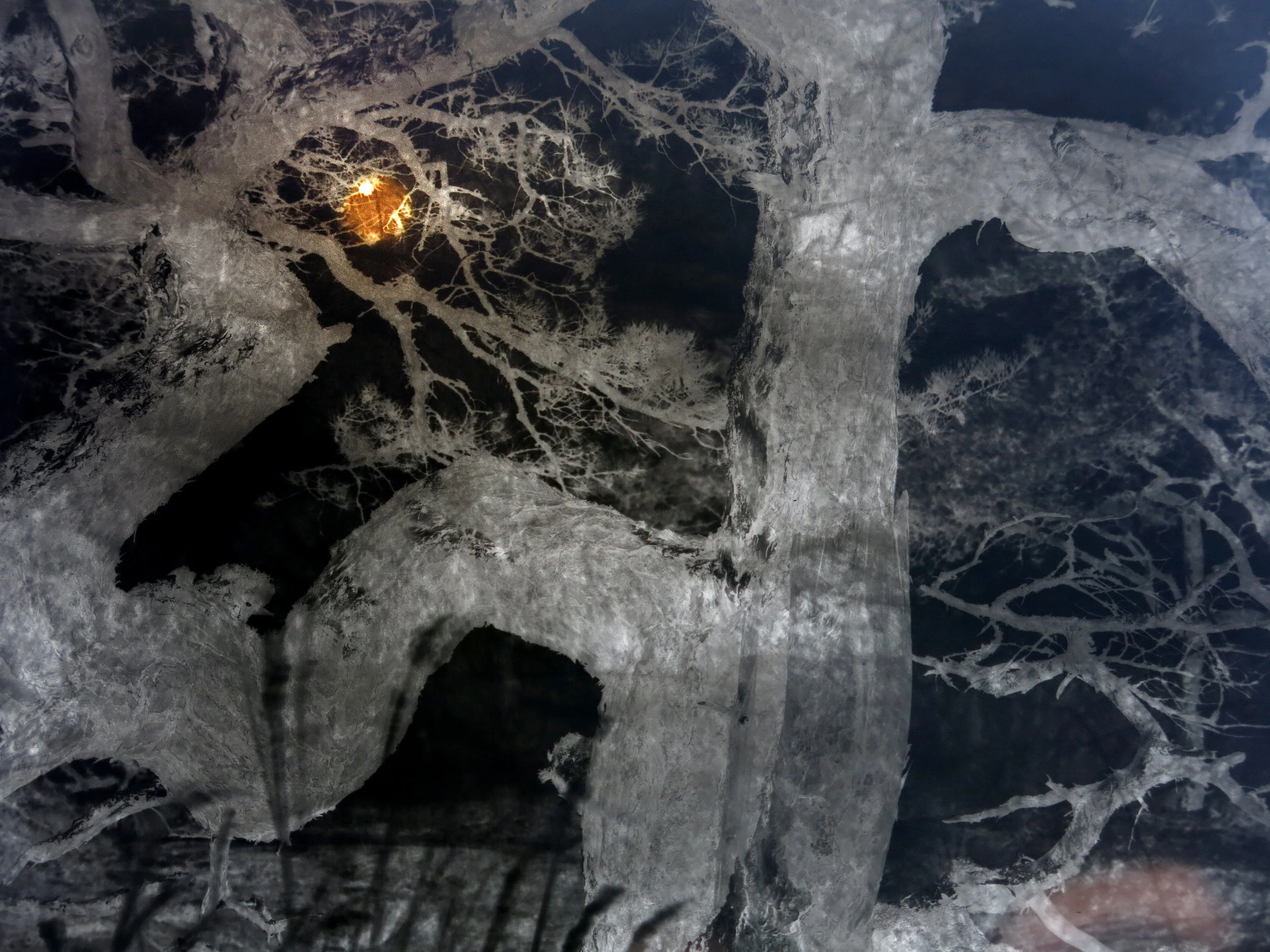– Idea näihin unimaailmakuviin syntyi, kun oli osittainen auringonpimennys vuonna 2015. Oli kiire kuvata pimennys. Ja keksittävä miten. Löysin ratkaisun ja tulosta katsellessani päätin jatkaa samalla tavalla. Näin ”Unimaailmani” sai alkunsa. Oikeat uneni ovat merkillisiä ja tämän vuoksi nimesin sarjan näin. Teoksia voisi myös kutsua valografiikaksi, koska valonlähde jokaisessa kuvassa on aurinko eri muodossaan. Haluisin tällä tavalla kunnioittaa aurinkoa, joka on syypää tähän projektiin. Kuvat ovat otettu omassa ympäristössäni täällä Sipoon saaristossa ja ne on kuvattu puhtaalla valokuvausmenetelmällä, niitä ei ole ei fotoshopattu eikä manipuloitu. Miten ja kuinka ne ovat syntyneet, on ainoastaan omassa tiedossani. Kuvat on printattu ohkaiselle japanilaiselle Kozo-paperille ja pingotettu kosteina kehykseen. Kehyksissä ei ole lasia, koska haluan näyttää paperin hienon struktuurin. Tätä ohutta tulostuspaperia ei enää valmisteta Japanissa ja sen takia kuvat ovat muuttuneet uniikeiksi